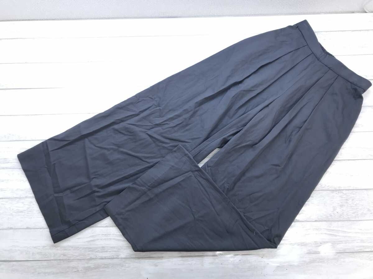 > リジエール Lisiere トレンド レトロ タック入り フレア イージー ワイド パンツ ボトムス レディース 日本製 ウエストゴム 36 グレー