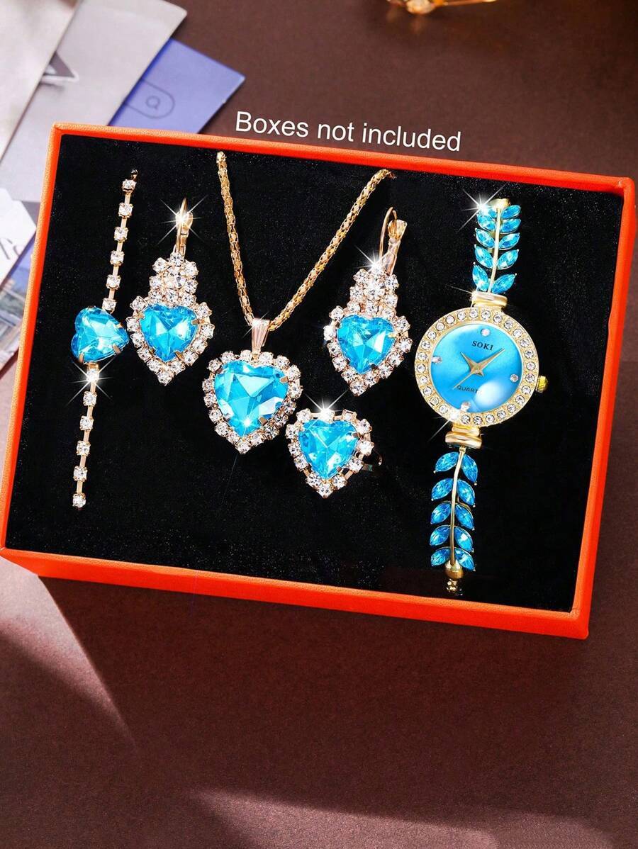 - 腕時計 レディース セット 1セット レディース腕時計 フェザー魚尾ストラップ カジュアル グラマラス フル クリスタル ダイヤル