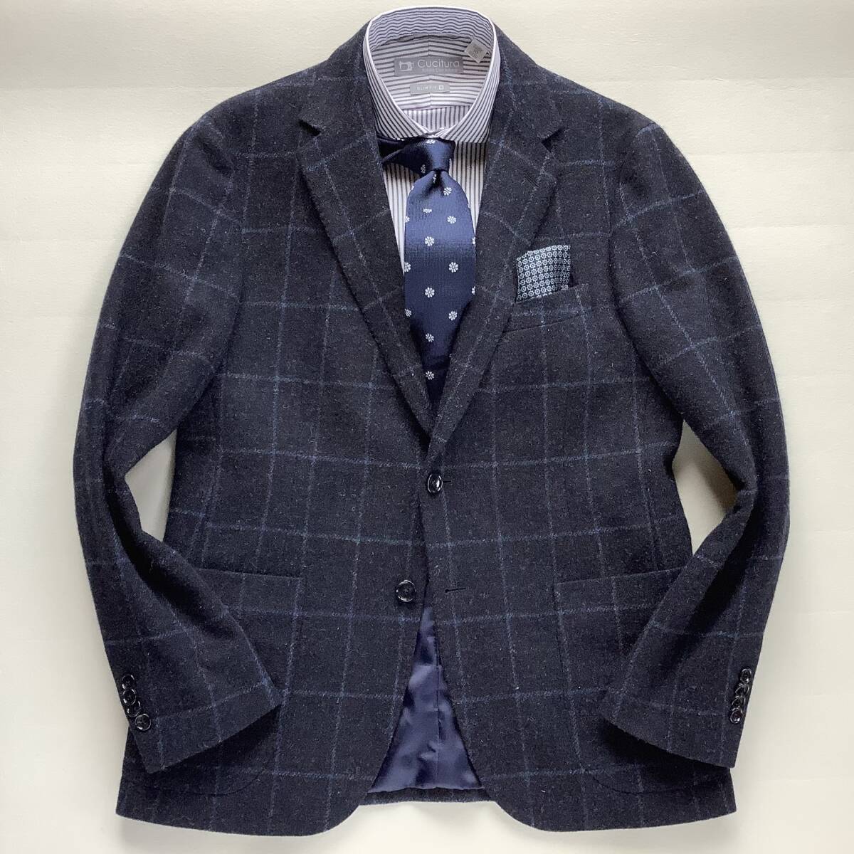 - 秋冬英国調★ユナイテッドアローズ×ブリティッシュウール XL チェック ネイビー テーラードジャケット SS80