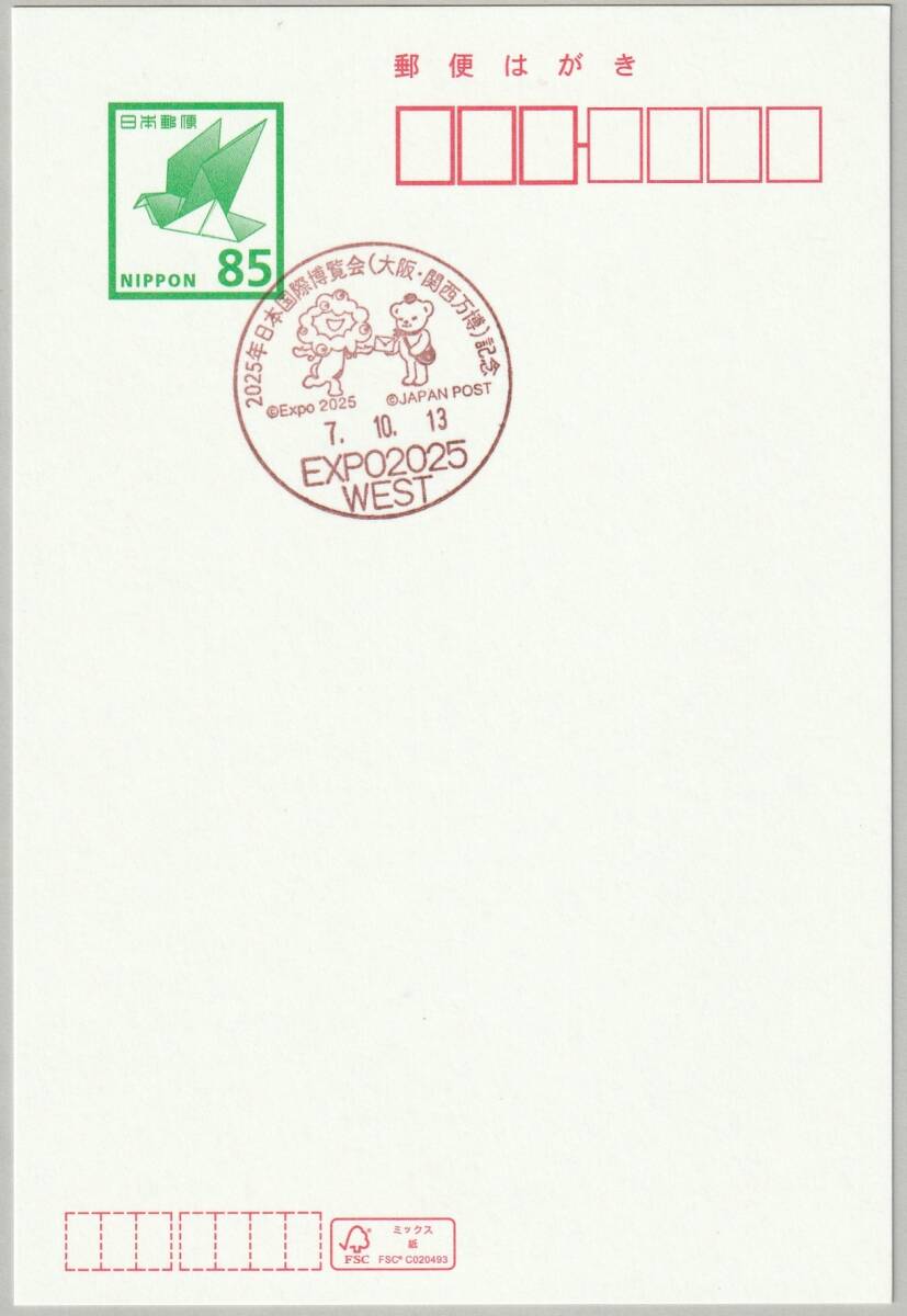 - 2025年 日本国際博覧会(2025大阪・関西万博)を記録するはがき◆EXPO2025 WEST郵便局/万博閉幕日・小型印押/令和7年10月13日