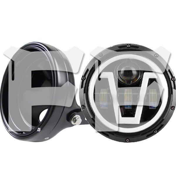- ハーレー ヤマハ ホンダ スズキ カワサキ LED 7インチ 60W ヘッドライト ハウジング Hi.Low.DRL.ウインカー HL-B-V 1セット 新品