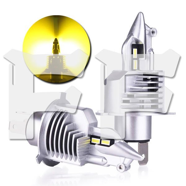 - H4 Hi/Low切替 LEDヘッドライト 3000K 8000LM ハロゲン球と同サイズ ハイ/ロー 2個 40W CSPチップ 新車検対応 LEDライト イエロー 新品