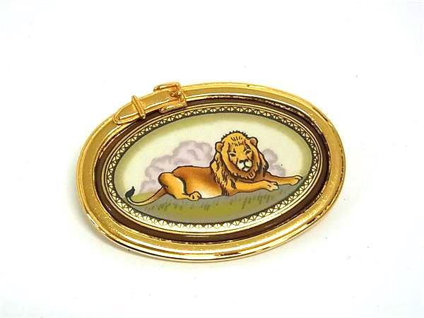 > 1円 HERMES エルメス エマイユ 七宝焼き ライオン ピンブローチ ピンバッジ アクセサリー レディース メンズ ゴールド系 FU5633