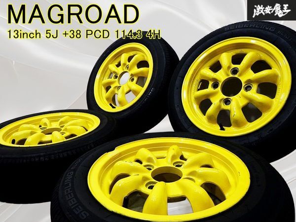 > ★24年製 155/65R13 タイヤ付★ MAGROAD マグロード 13インチ 5J +38 PCD 114.3 4H 4穴 ホイール 4本 ハコスカ ケンメリ JAPANなど 棚36D