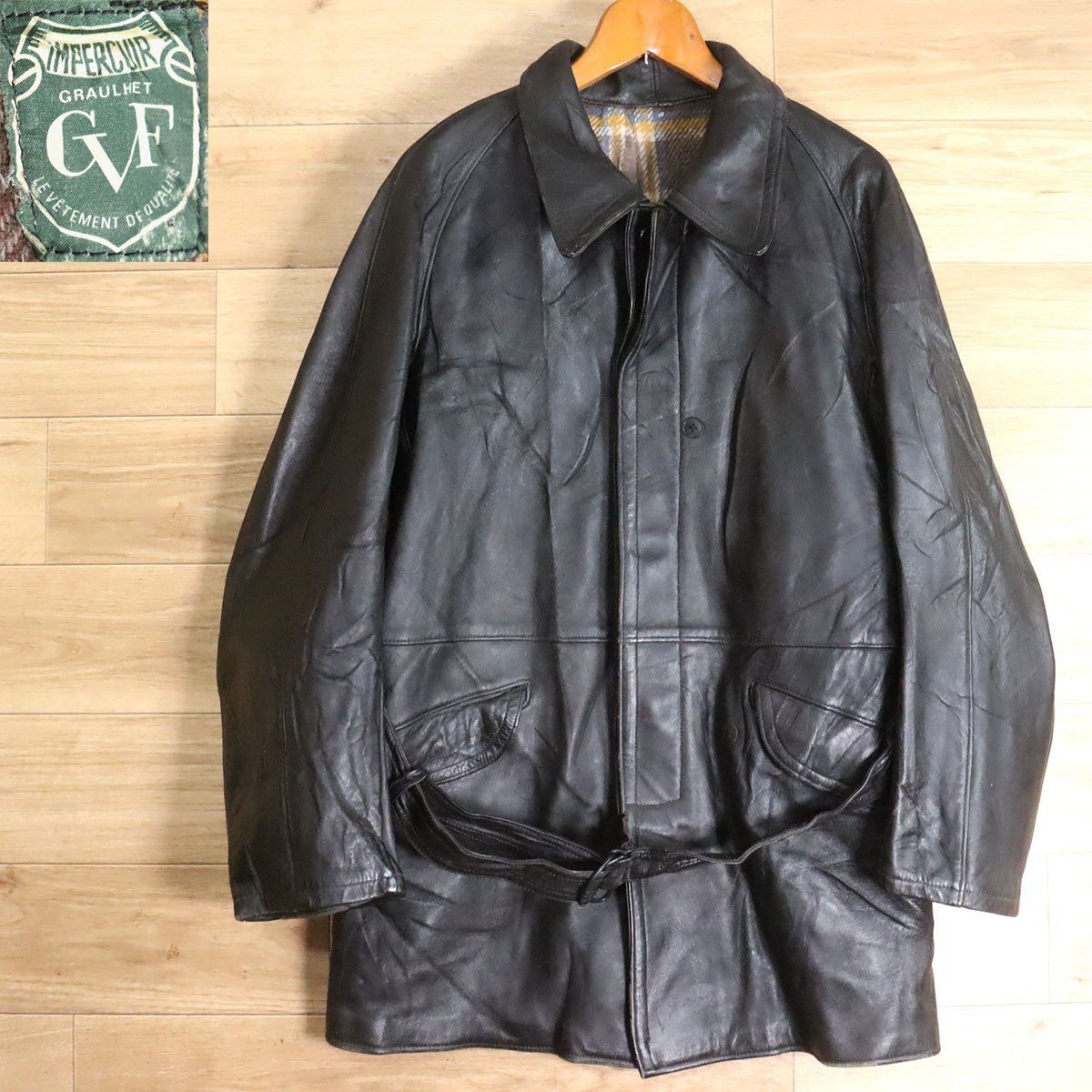 > %4K/Y5.13-4 フレンチヴィンテージ GVF レザーカーコート レザーコート 本革 レザージャケット 革ジャン 皮ジャン ブルゾン