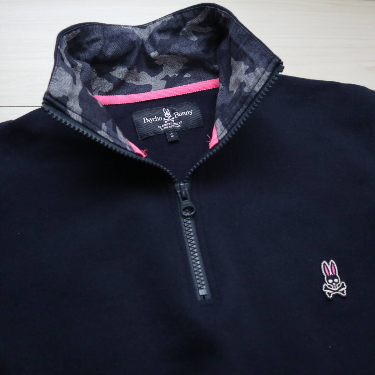 - 美品!日本製!Psycho Bunny(サイコバニー)★迷彩切替 ハーフジップ スウェット/メンズ/ネイビー/サイズS