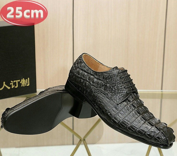 - クロコダイルレザー ビジネスシューズ 最高級 ワニ革 クロコダイル 靴 メンズシューズ 革靴 ブラック 25.0cm 【n782】