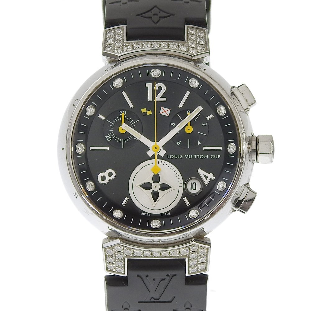 > ■ 1円 ~ 中古品 ■ LOUIS VUITTON ルイ ヴィトン ■ タンブール ラブリーカップ クロノグラフ Q132K ■ 黒 ブラック ダイヤモンド 腕時計