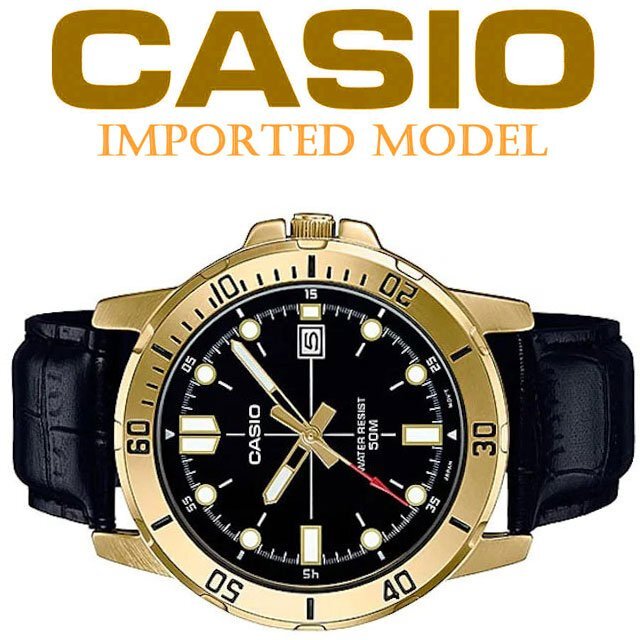 > 逆輸入カシオ 新品 最新作 視認性高くシンプルで飽きがこない ゴールド&ブラックメタリック 50m防水 腕時計 CASIO メンズ 日本未発売