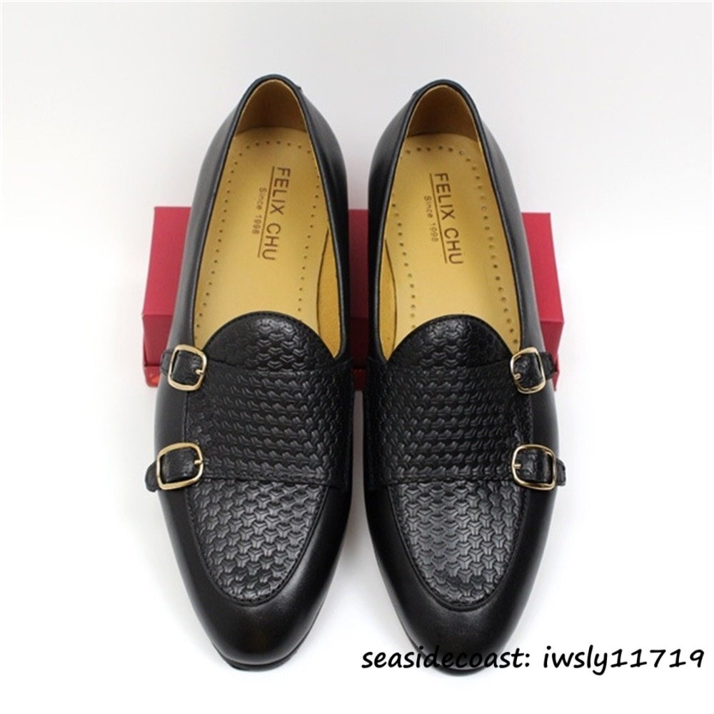 > 定価9万◆最高級 ローファー スリッポン 牛革 ビジネスシューズ 手作り 本革 レザーシューズ 個性 メンズ 通勤靴 結婚式 ブラック 26.5cm