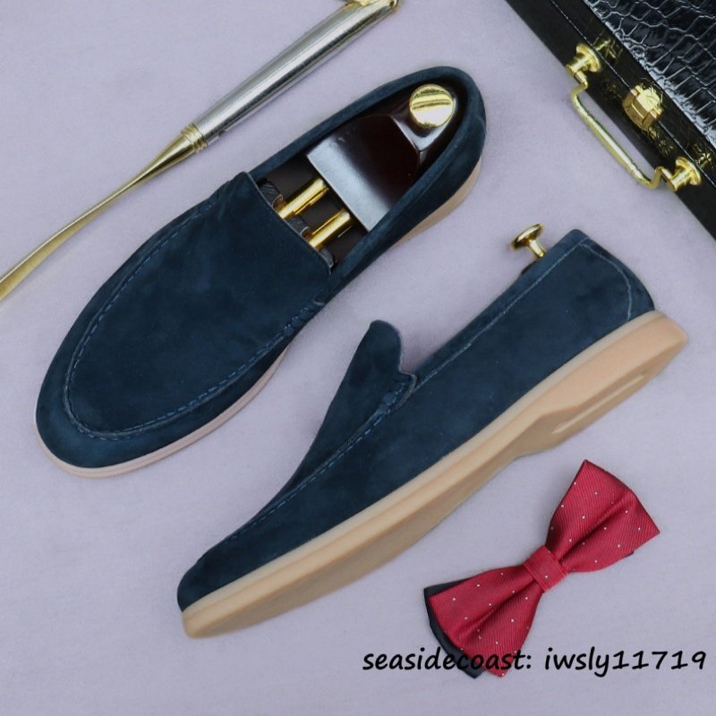- 最高級★ビジネスシューズ 本革 メンズ ドライビングシューズ 職人手作り ローファー スリッポン スエード革 紳士靴 革靴 ネイビー 26.5cm