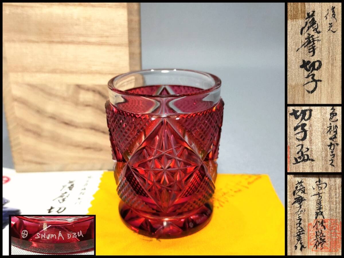 > TO27 復元 島津薩摩切子 酒器 色被せガラス 尚古集成館監修 薩摩ガラス工芸 作 切子盃 紅 ぐい呑 ショットグラス 栞・共布・共箱