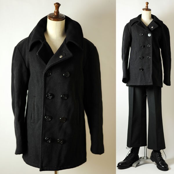 > ★【USA製 民生品】80s~90s位 米軍 US ARMYタイプ ウールメルトン 裏地キルティング Pコート(ピーコート)サイズ34 ブラック USED
