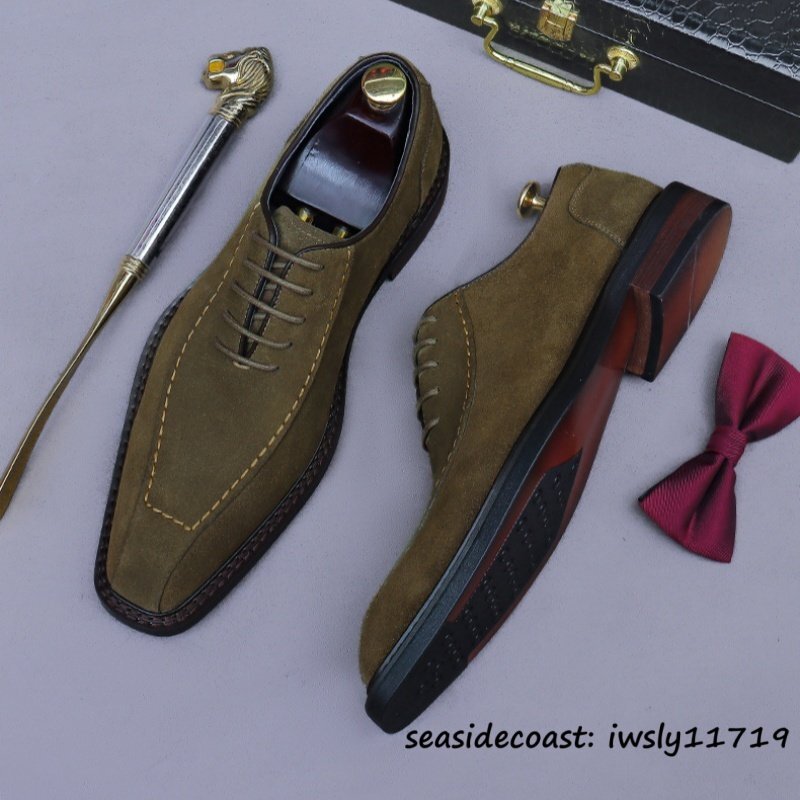 - 定価10万超◆最高級 ビジネスシューズ メンズ スエード革 本革 レザーシューズ 職人手作り 紳士靴 革靴 牛革 宴会 結婚式 ブラウン 26.5cm