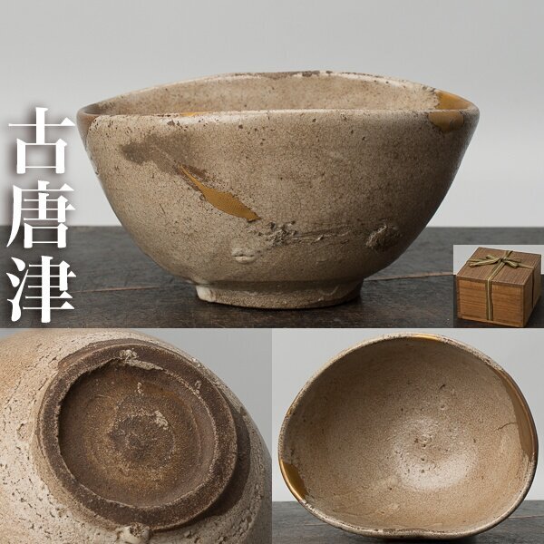 > 【千h1145】古唐津 茶碗 蒔絵直し有 桃山-江戸時代初期 合箱 唐津 蒔絵 碗 発掘伝世