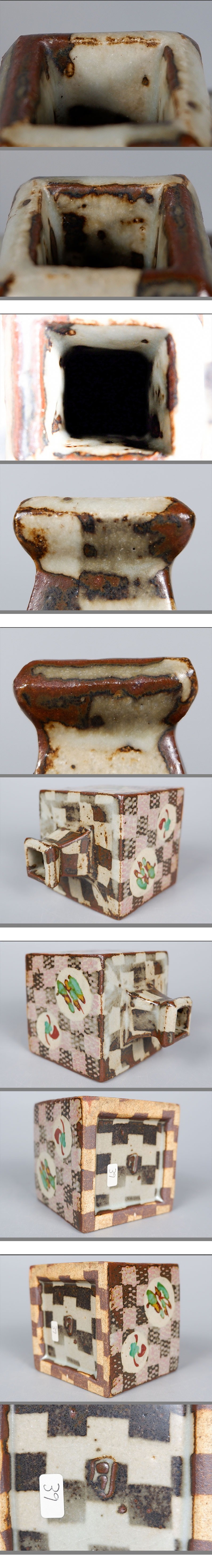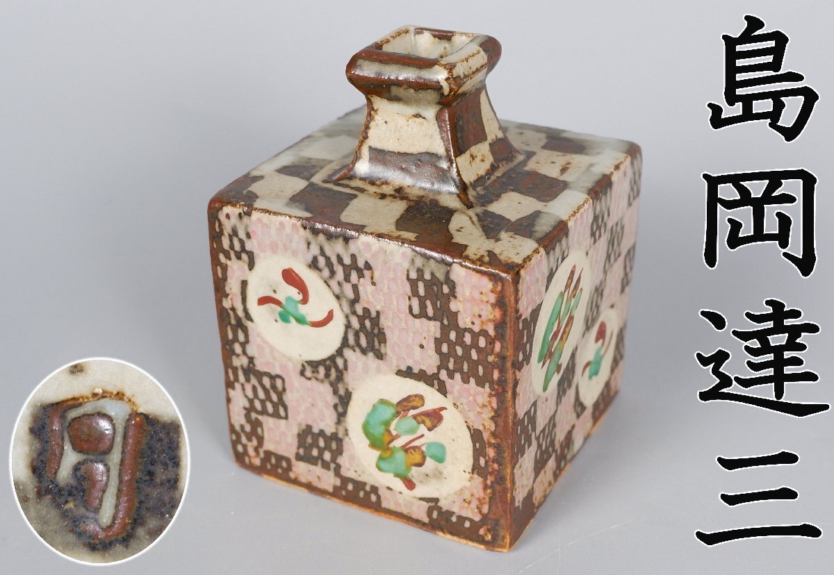 - 【MKA】人間国宝 島岡達三 練上縄文象嵌赤絵草花文方壺 共箱 美品 人気のピンク系 益子 栃木 民藝巨匠 真作保証