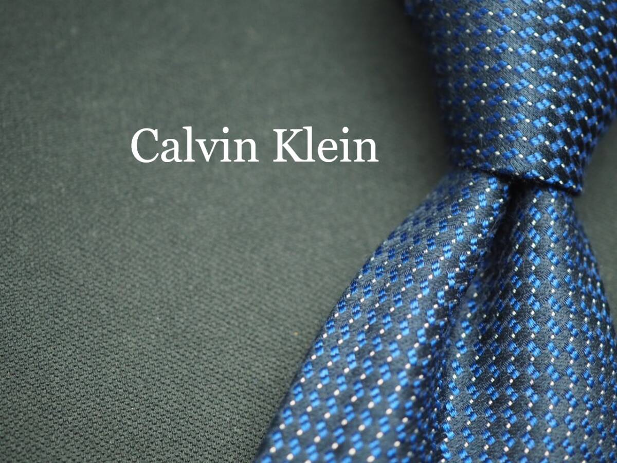 > 美品【Calvin Klein カルバンクライン】 G1360 細身 ブルー ブラック SILK ブランド ネクタイ 古着 良品 転売 仕入