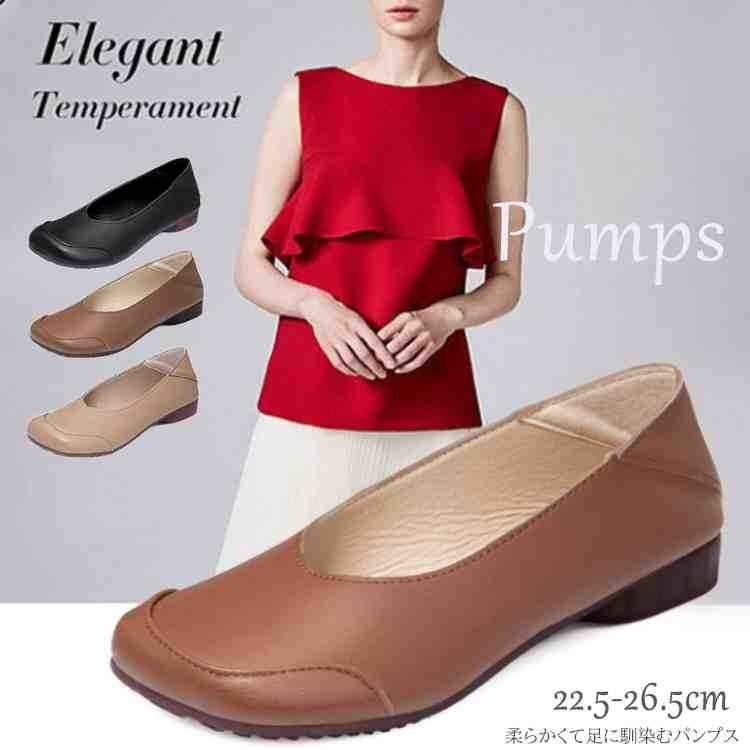- レディース パンプス ミュール 靴 安定感 ソフト 痛くない バレエシューズ 靴 ぺたんこ 24.0cm(38) 黒