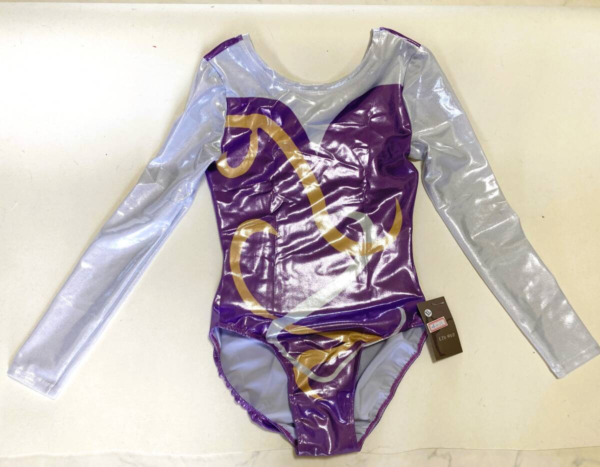 > オーダー製作品XLサイズ パープル LIUHUO製/体操レオタード女性ダンスユニタードトレーニングレオタードツルスベ メタリック キラキラ