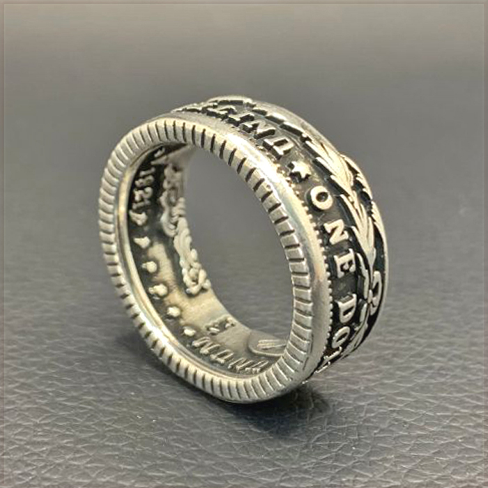 - [RING] VINTAGE MORGAN SILVER DOLLAR アメリカ 1921年 モーガン ダラー 銀貨 1$コイン デザイン 10mm シルバー リング 19号 【送料無料】