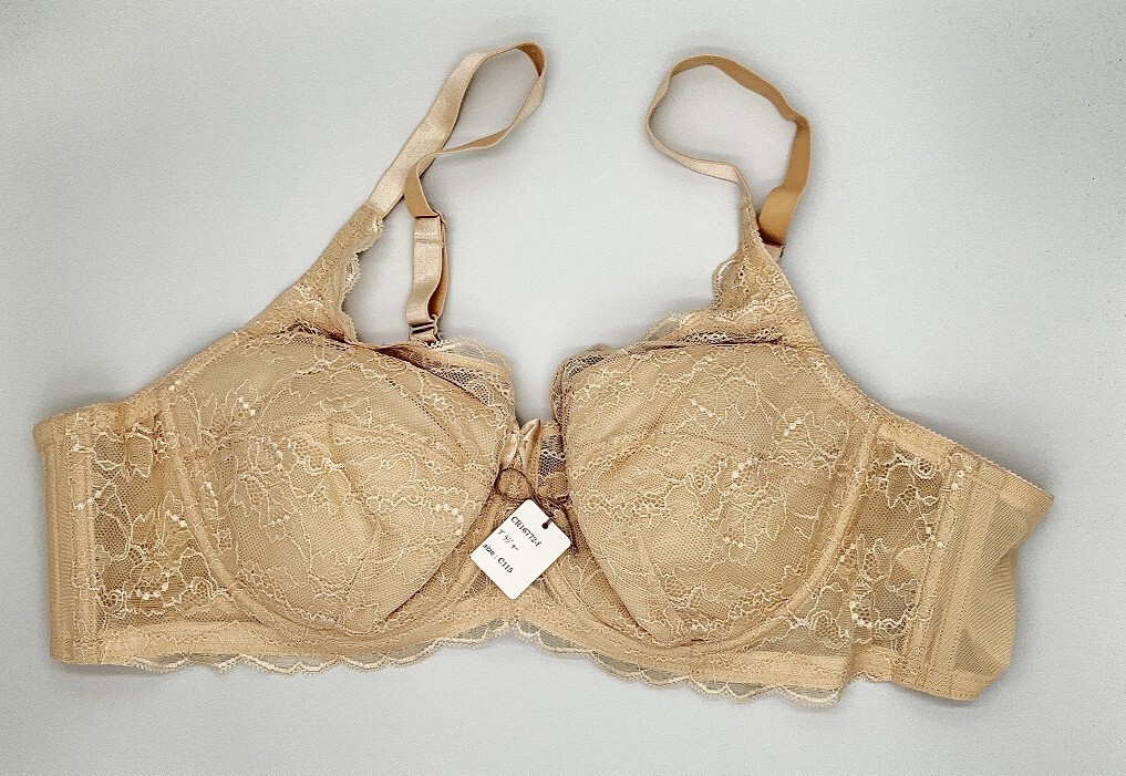 - CR16772 IB⑦【特価】新品 大きい ブラジャー C115 有名ブランド ベージュ 花柄 レース リボン 脇高 フルカップ レディース