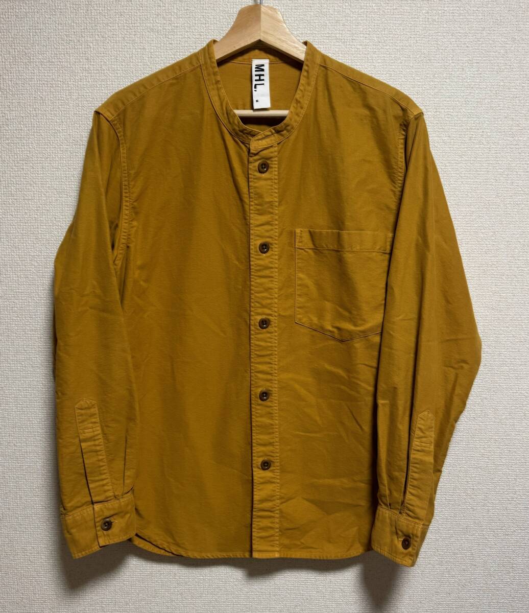 > 美品 マーガレットハウエル バンドカラー シャツ サイズM ノーカラー MHL MARGARET HOWELL