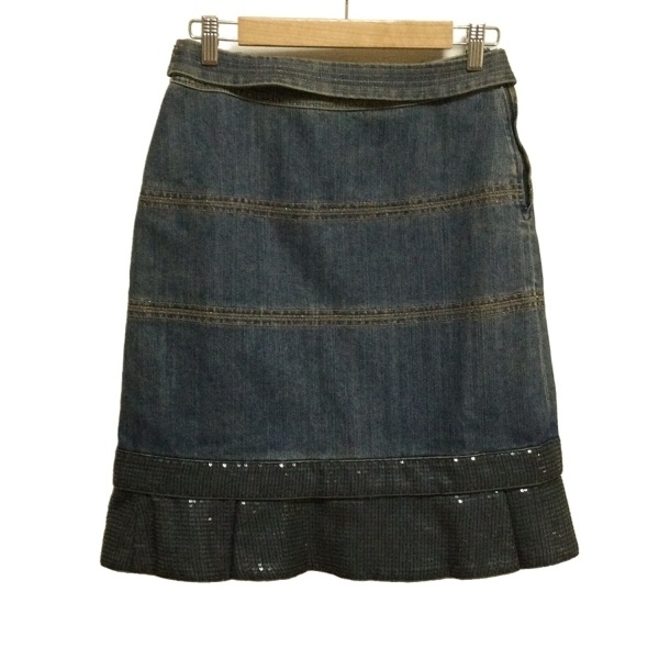 > トゥービーシック TO BE CHIC スカート サイズ40 M - ブルー×ライトブラウン レディース ひざ丈/デニム/スパンコール ボトムス