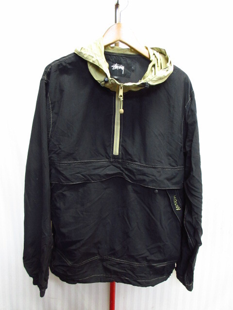 > STUSSY ステューシー アノラックパーカー メンズL 黒 ロゴ刺繍フーディー マウンテンパーカー ナイロンパーカー ウインドブレーカー11074