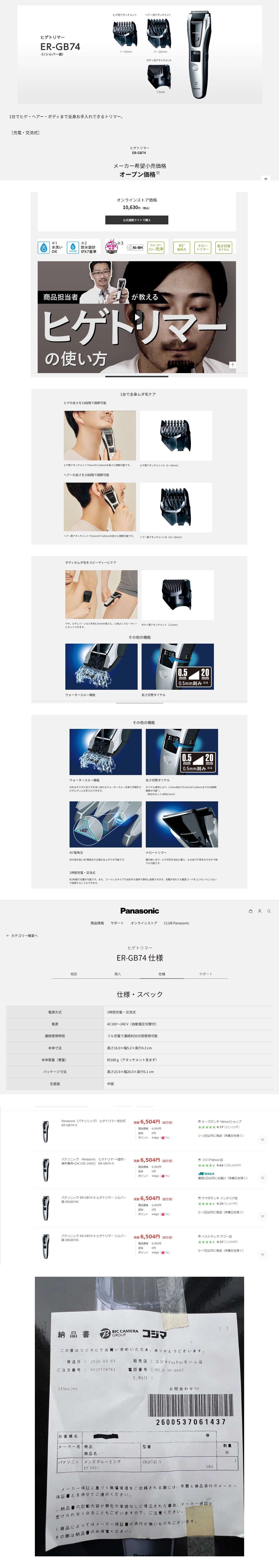 - Panasonic パナソニック ヒゲトリマー ER-GB74 新品未使用 (未通電・開封品・保管品)パッケ-ジダメ-ジ有 一応ジャンク