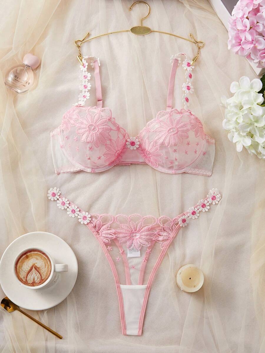 - インティメート ブラジャー ショーツ セット 女性用セクシーランジェリーセット 刺繍レース入りブラ&ショーツ 2点セット