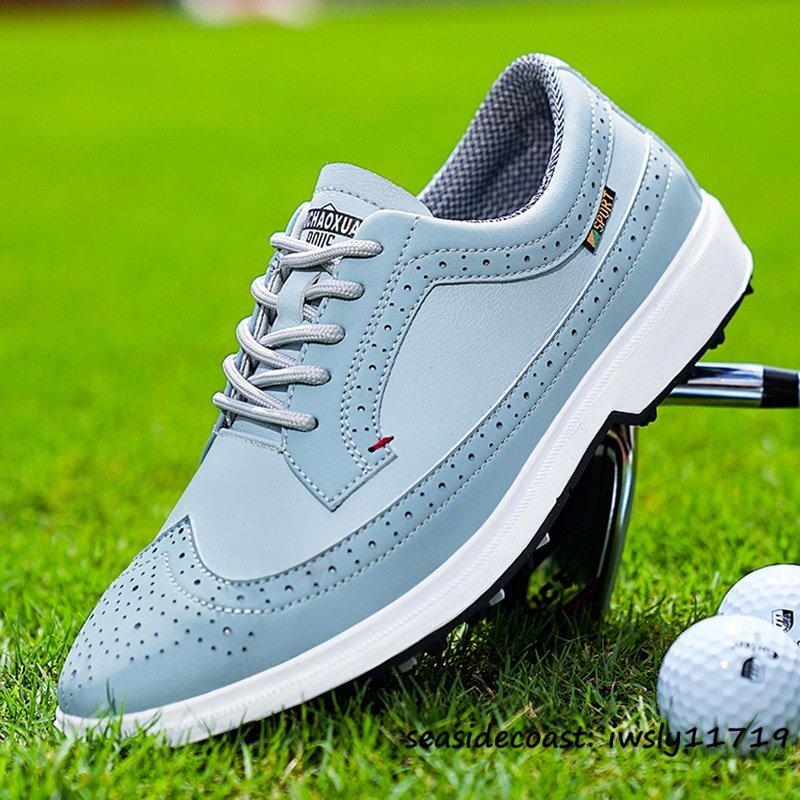 - 新品◆最高級 ゴルフシューズ メンズ 彫り 手作り 強いグリップ 4E 運動靴 スポーツシューズ 防滑 軽量 フィット感 弾力性 ブルー 28.0cm