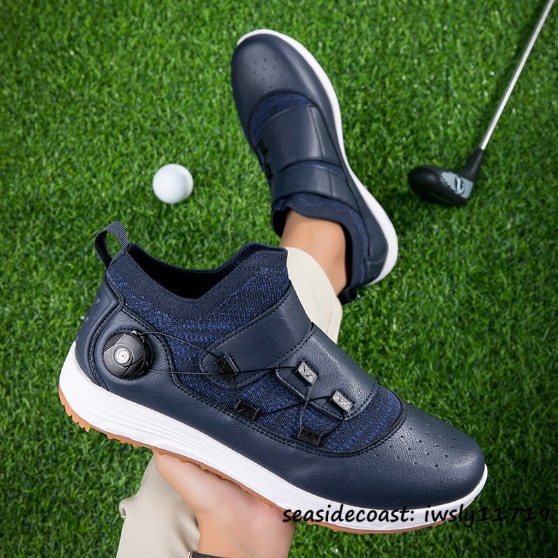 > 高級品 ゴルフシューズ 強いグリップ 新品ダイヤル式 運動靴 フィット感 軽量スポーツシューズ 弾力性 通気性 防滑 ネイビー 27.5cm