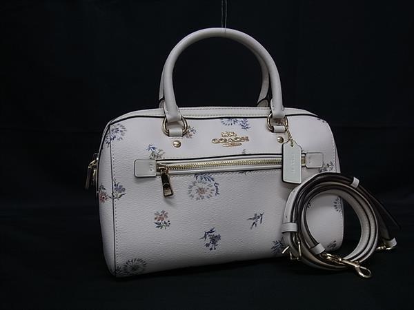 - 1円 ■極美品■ COACH コーチ 4105 サッチェル PVC×レザー 花柄 2WAY クロスボディ ハンドバッグ トート ショルダー アイボリー系 FU4982