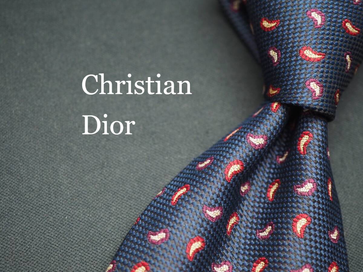 - 美品【Christian Dior クリスチャン ディオール】 G1553 USA ネイビー POLYESTER SILK ブランド ネクタイ 古着 良品 転売 仕入
