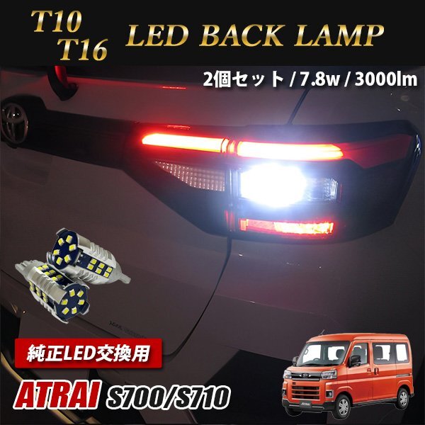 - アトレー S700 S710 バックランプ T10 T16 LED 30連 ホワイト バルブ 爆光 2個セット 送料無料