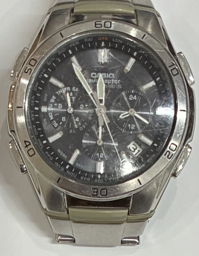 > #337【不動品】CASIO カシオ ウェーブセプター クロノグラフ メンズ 腕時計 WVQ-M410