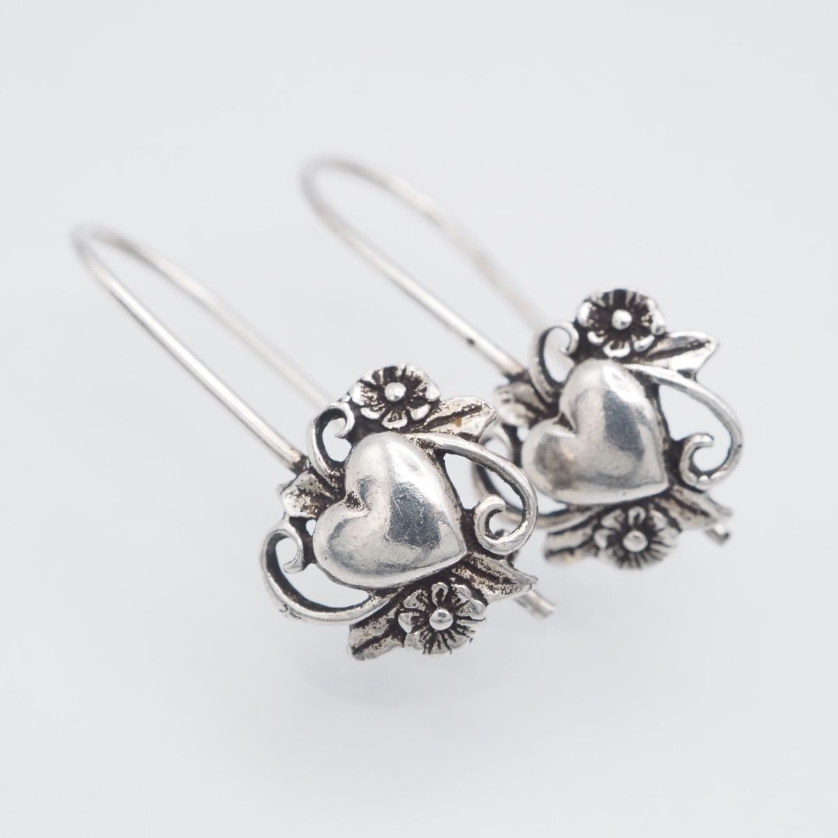 - H847 ヴィンテージ 925刻印 ピアス ハート フラワー デザイン シルバー