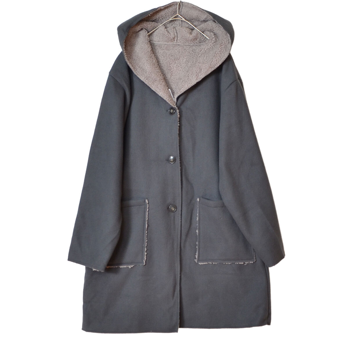 - 軽くてあったか 裏ボアフーディーコート レディース ミドル丈 ゆったり 体型カバー M〜L 秋冬 アウター 51543 チャコールグレー