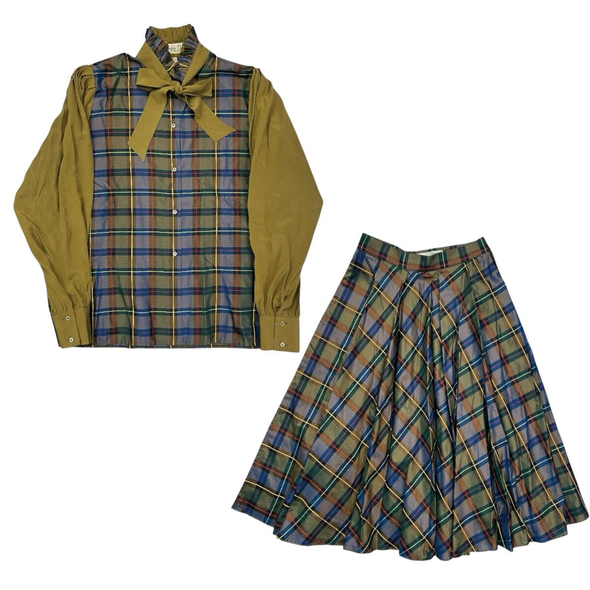 - クリスチャンディオール ヴィンテージ タータンチェック シルク ボウタイ セットアップ Dior Vintage Tartan Check Silk Bow Tie