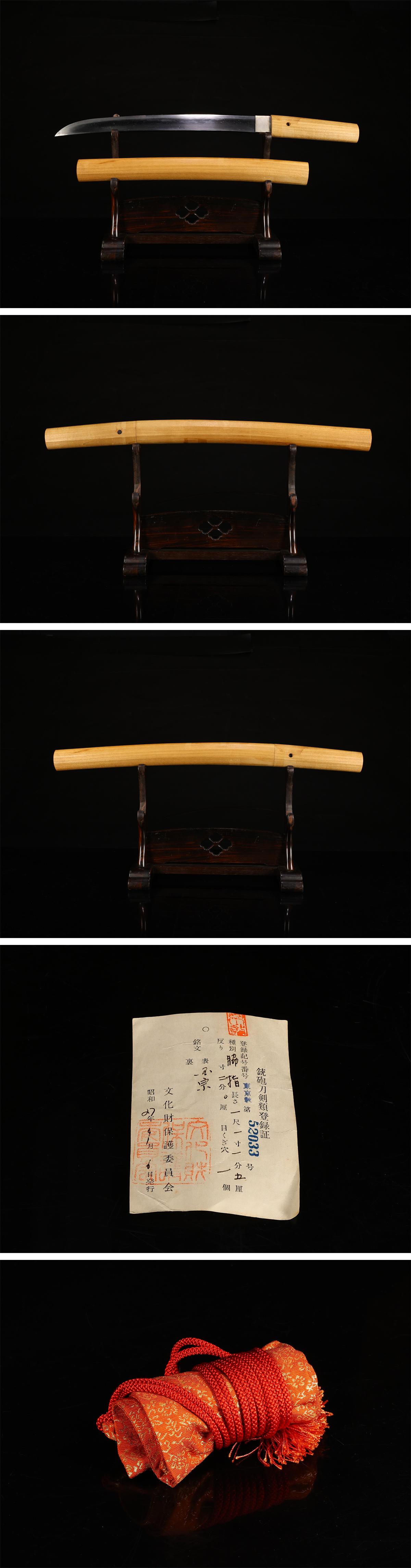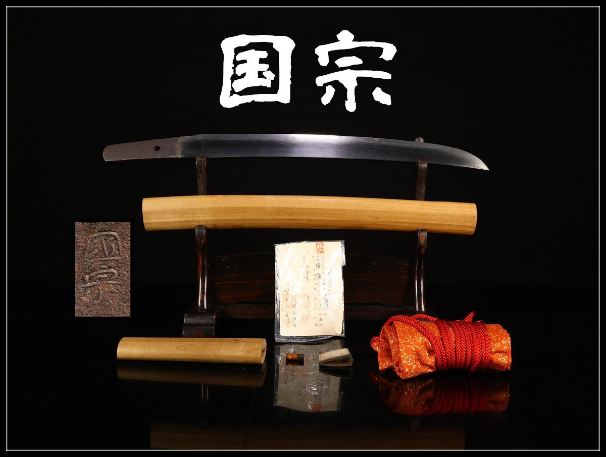 【吉】WB401 時代武具 【国宗】銘 脇差 白鞘 登録証付Sg!拍卖