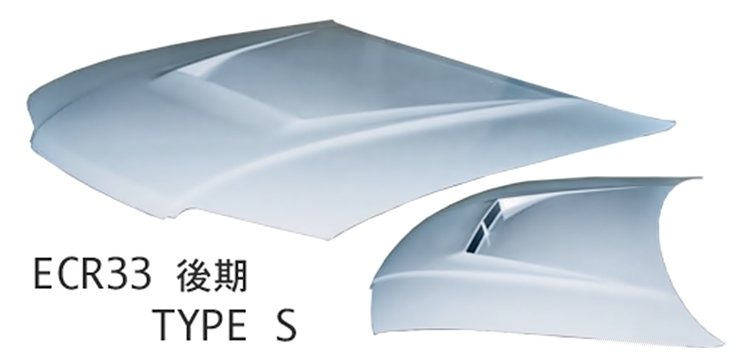 > 「高勢スタウト/STOUT」スカイライン(ECR33)後期用エアロボンネット TypeS(FRP)