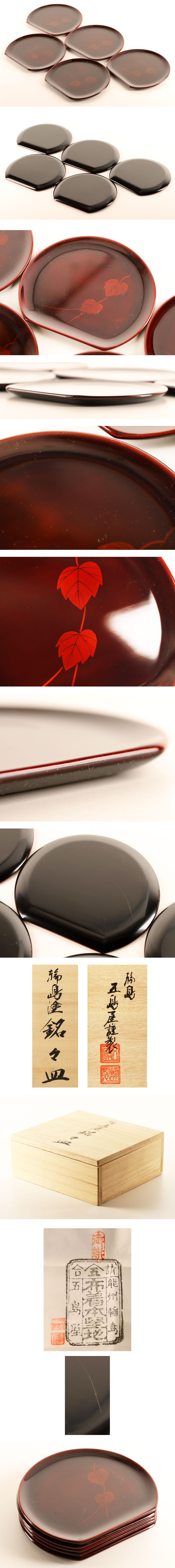 【流】能登輪島塗 五島屋謹製 銘々皿五客 共箱 未使用品 HD127