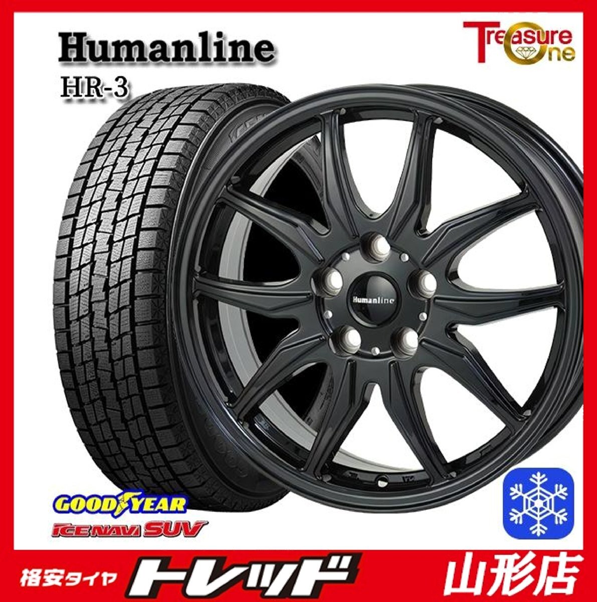 > 山形店 新品 冬タイヤホイール4本セット Humanline HR-3 18インチ 7.0j 5H114.3 +40 BK グッドイヤー アイスナビSUV 235/60R18 2024年製