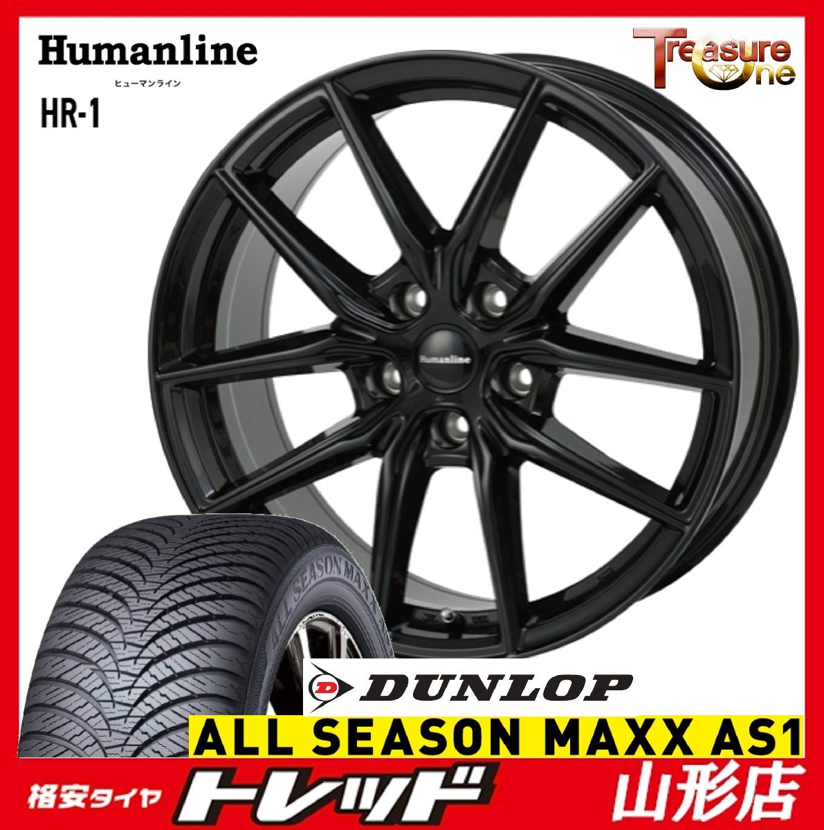 > 山形店 新品 タイヤホイールセット Humanline HR-1 17インチ 7.0j 5H114.3 +38 BK DUNLOP オールシーズンマックスAS1 215/55R17 2025年製