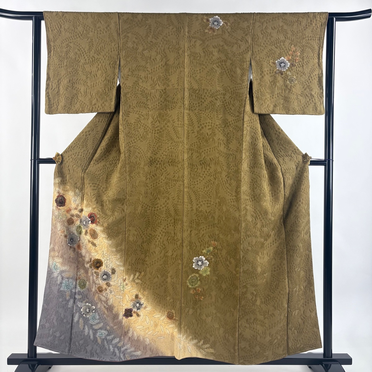 - 訪問着 身丈156.5cm 裄丈62cm S 袷 辻が花柄 金銀彩 絞り 茶色 正絹 秀品 【中古】