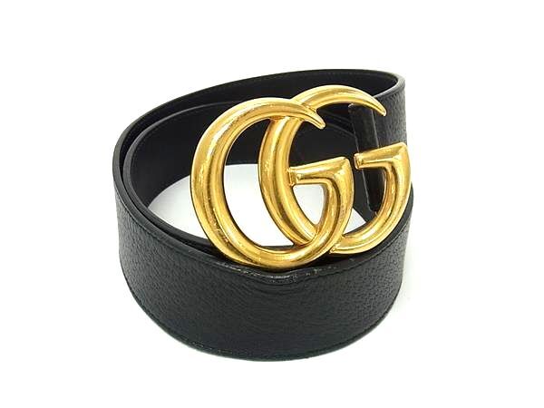 > 1円 GUCCI グッチ 406831 GGマーモント レザー ゴールド金具 ベルト 表記サイズ 85・34 メンズ ブラック系 GA5965