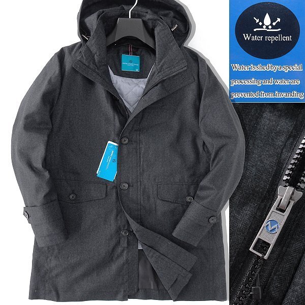 - 新品 ミエル AVANT-GARDE 撥水 メランジ 中綿ライナー フード コート M 濃灰 【ADF92-36000_11】 MIERU 秋冬 ヘリンボーン ウールライク