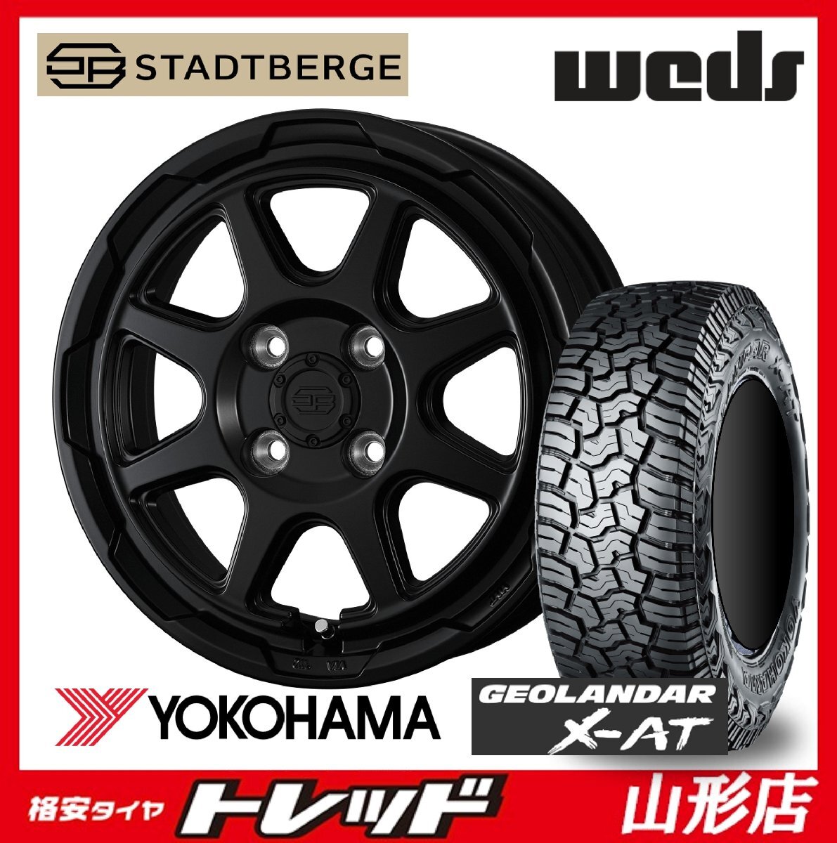 - 山形店 新品 夏タイヤ ホイールセット スタッドベルグ 14インチ 4.5J 4H100 +45 SMBK ヨコハマ ジオランダー X-AT 145R14 2024年製