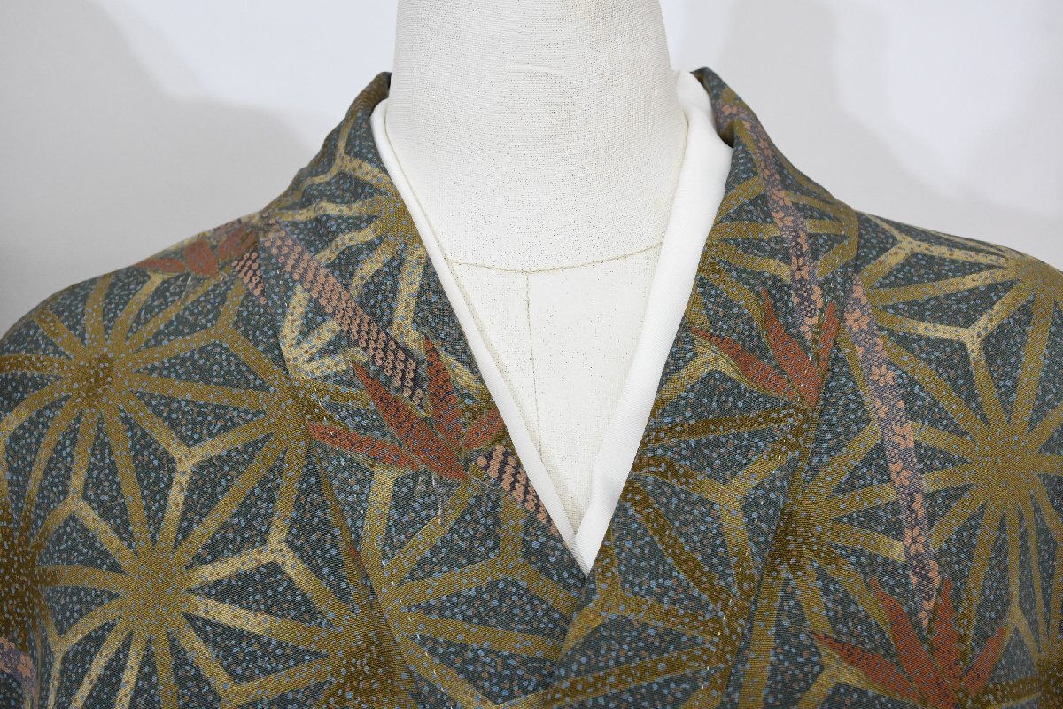 > 小紋 着物 袷 麻の葉 笹 竹 身丈156.5cm 裄丈66cm ★ kb-7464 桜庭呉服店
