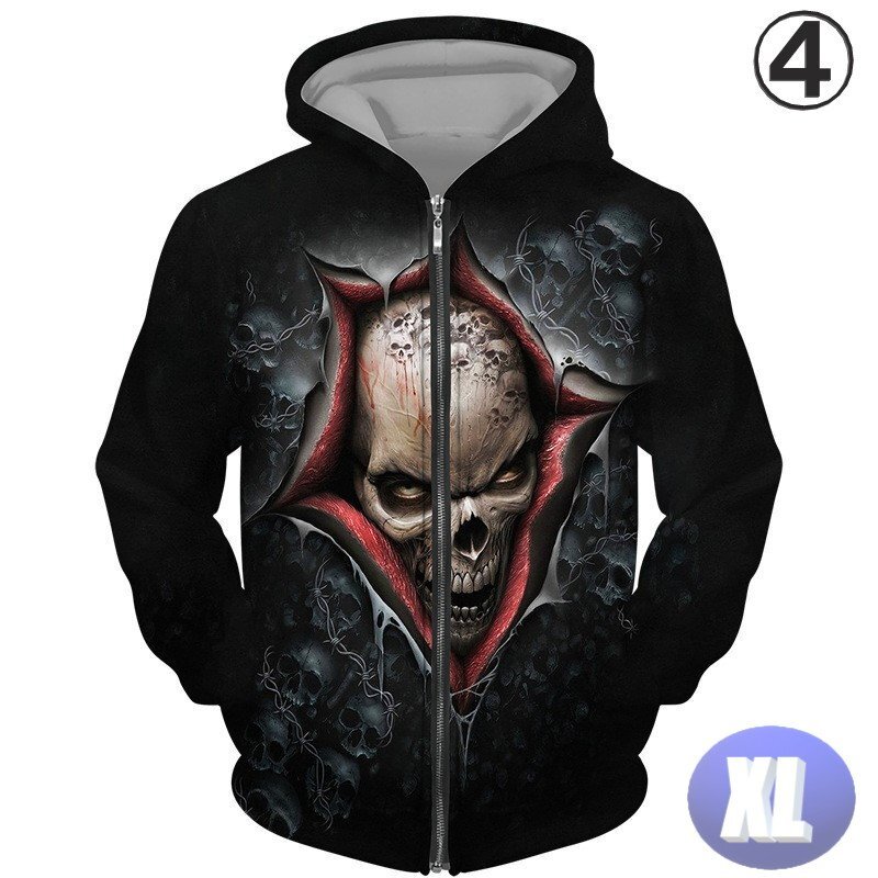 - フード付き ドクロパーカー ジップアップ カラー4 XL トレーナー アウター 防寒 n717